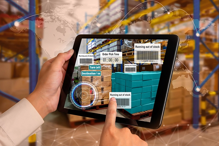 Person using tablet to manage warehouse automation and deliveries, representing iLogistech 3PL logistics software for efficient supply chain management.